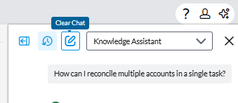 To remove responses and start a new session, click the Clear Chat icon: